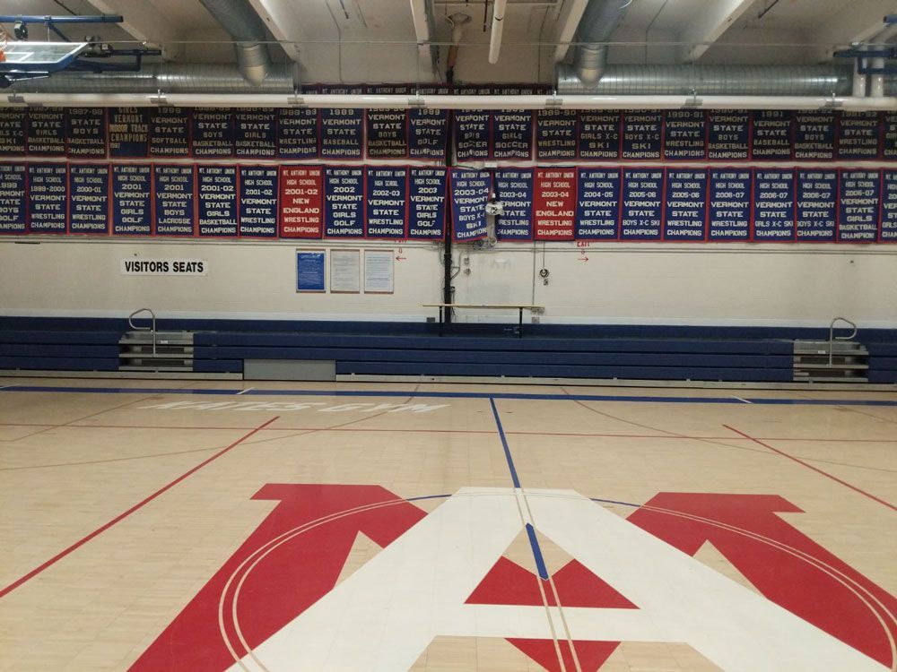 NEW CURTAINS and BASKETBALL HOOPS at the US OLYMPIC TRAINING Center in Lake Placid NY.